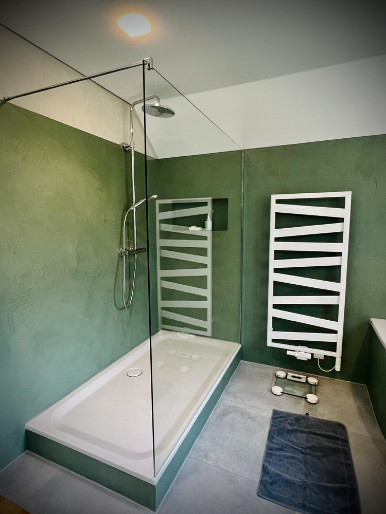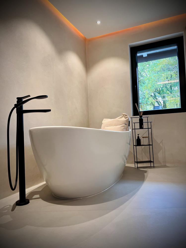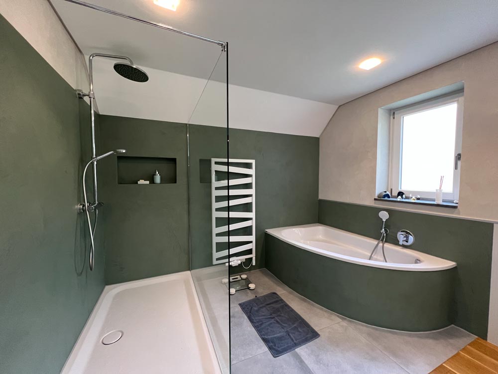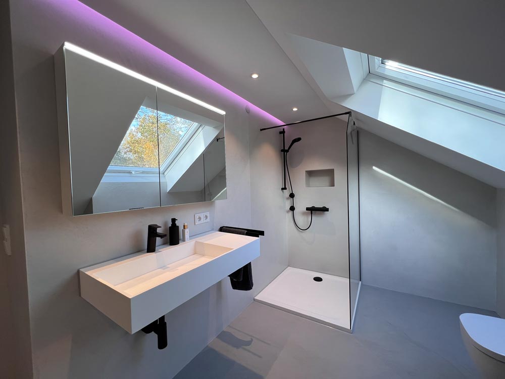 Werfen Sie einen Blick auf unsere erfolgreich abgeschlossenen Projekte (mittlerweile weit über 150 Bäder und Böden) und lassen Sie sich inspirieren. Unsere Bildergalerie zeigt verschiedene Designstile und Anwendungen von Mikrozement in Bädern und Böden. Sehen Sie, wie unsere Lösungen in realen Räumen aussehen und entdecken Sie die Vielseitigkeit und Ästhetik fugenloser Oberflächen.